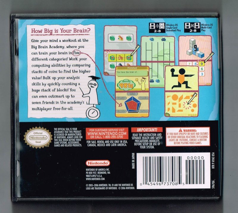 Big Brain Academy Nintendo DS Game Case ONLY. This is for the CASE ONLY there is NO game or Manual Included. if you have any further questions please don't hesitate to ask! Flat $5 shipping No Matter if you purchase 1 or 100 shipping is only $5 and if your order is over $50 Shipping is FREE!!!