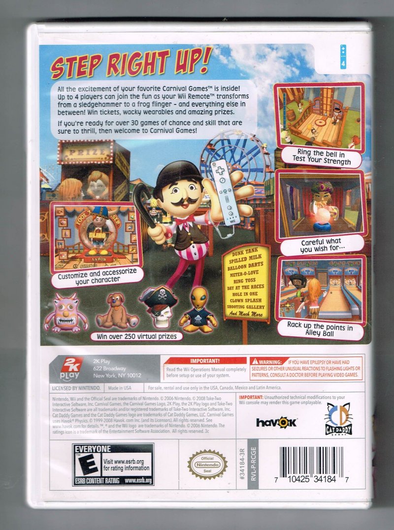 Carnival Games Nintendo Wii Game Case ONLY. This is for the CASE ONLY there is NO game or manual Included. if you have any further questions please don't hesitate to ask! Flat $5 shipping No Matter if you purchase 1 or 100 shipping is only $5 and if your order is over $50 Shipping is FREE!!!