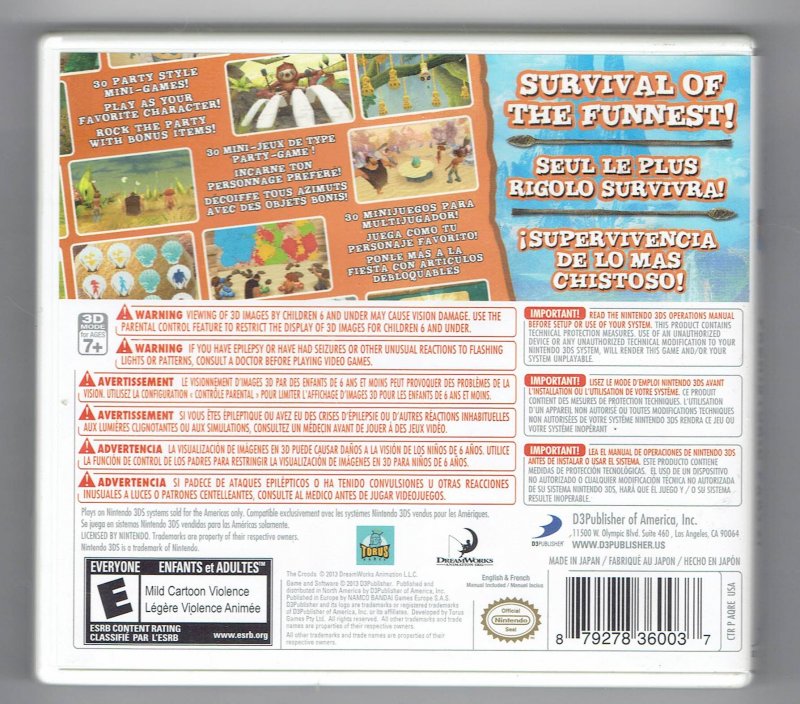 The Croods Prehistoric Party Nintendo 3DS Game Case ONLY. This is for the CASE ONLY there is NO game or Manual Included. if you have any further questions please don't hesitate to ask! Flat $5 shipping No Matter if you purchase 1 or 100 shipping is only $5 and if your order is over $50 Shipping is FREEE!!!
