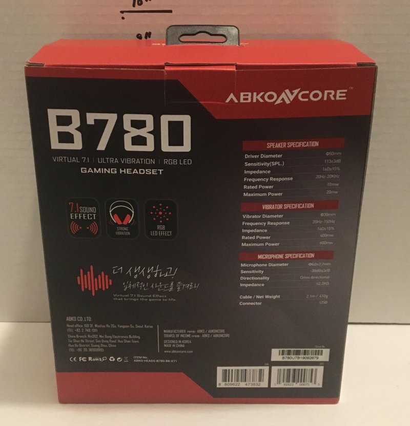more great Video Games @ www.everything-collectibles.com ABKO AVCORE B780 Gaming Headset NIB RGB 7.1. This Headset is in good condition as you can see from the picture. any further questions please don't hesitate to ask!