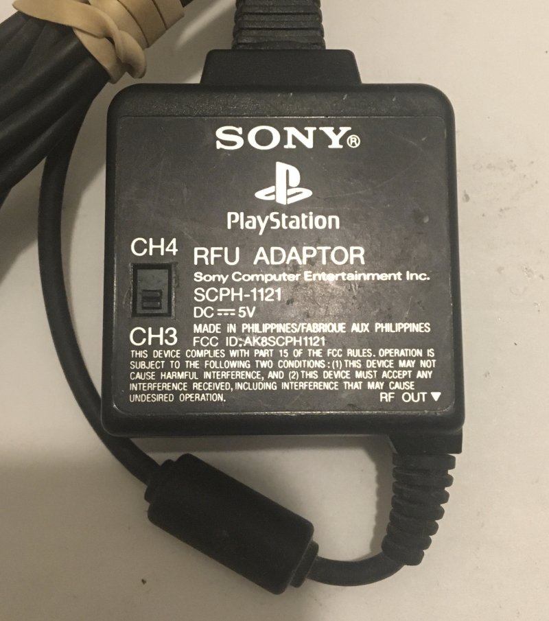 more great Video Games @ www.everything-collectibles.com SONY PlayStation SCPH-1121 RF RFU A/V Audio Video Cable PS1 PS2 Replacement. its in good used condition as you can see from the picture. tested and Works. if you have any further questions please don't hesitate to ask! if your order is over $50 Shipping is FREEE within The U.S.!!!