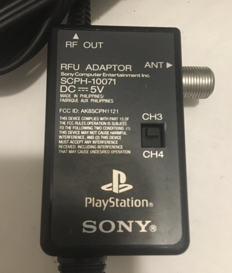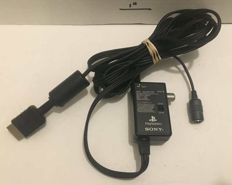more great Video Games @ www.everything-collectibles.com SONY PlayStation SCPH-10071 RF RFU A/V Audio Video Cable PS1 PS2 Replacement. its in good used condition as you can see from the picture. tested and Works. if you have any further questions please don't hesitate to ask! if your order is over $50 Shipping is FREEE within The U.S.!!!