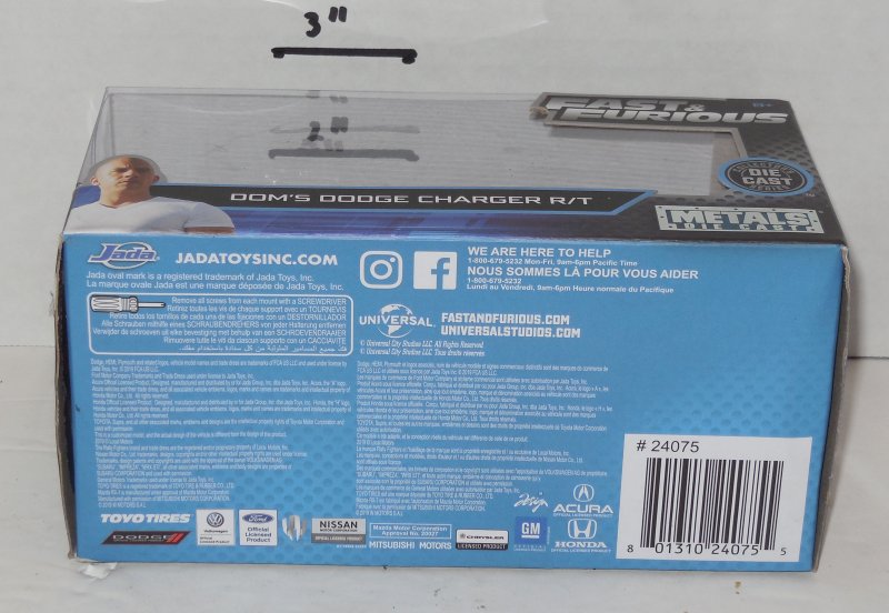 Find More Die cast Cars @ www.everything-collectibles.com Jada 1/32 Fast And Furious Dom's Dodge Charger RT #24075 Die Cast Metal. what you see is what you will receive. please see photo for more Details. Don't Hesitate to contact us with any questions.
