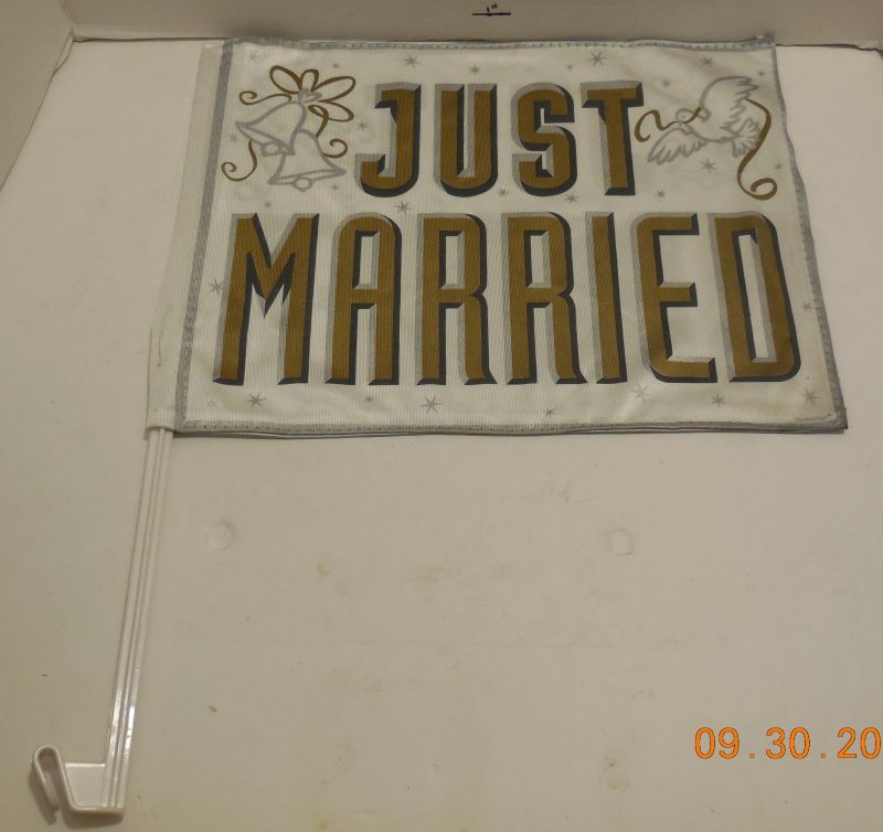 more great items @ www.everything-collectibles.com. For sale is a Wedding Just Married Car Window Flag. Its In good used Condition as you can see from the pictures provided. If you would like additional pictures or a more detailed description please don't hesitate to ask.