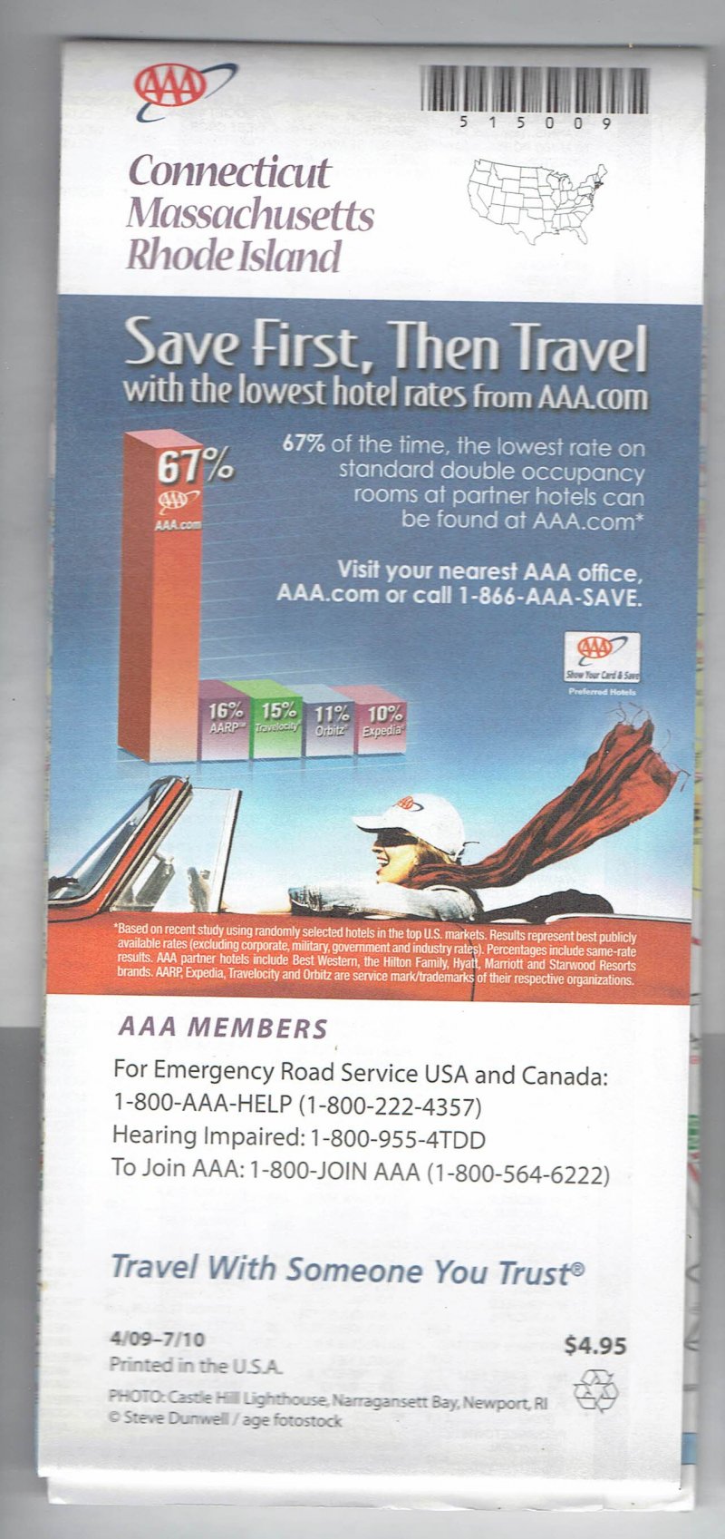 2009 AAA Map Connecticut Massachusetts Rhode Island