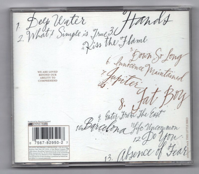 track list Deep Water What's Simple Is True Hands Kiss The Flame Down So Long Innocence Maintained Jupiter Fat Boy Enter From The East Barcelona Life Uncommon Do You Absence Of Fear [No Audio] This Little Bird