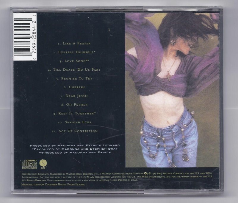 Track List Like A Prayer Express Yourself Love Song Till Death Do Us Part Promise To Try Cherish Dear Jessie Oh Father Keep It Together Spanish Eyes Act Of Contrition