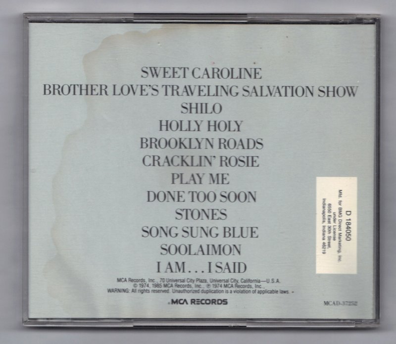 track list Sweet Caroline Brother Love's Traveling Salvation Show Shilo Holly Holy Brooklyn Roads Cracklin" Rosie Play Me Done Too Soon Stones Song Sung Blue Soolaimon I Am ... I Said