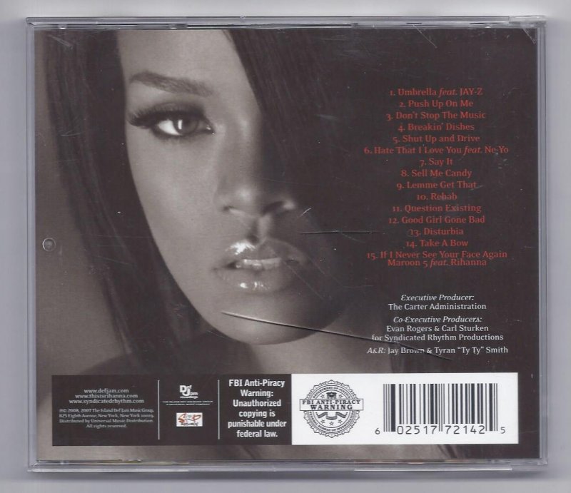 Track List Umbrella Push Up On Me Don't Stop The Music Breakin" Dishes Shut Up And Drive Hate That I Love You Say It Sell Me Candy Lemme Get That Rehab Question Existing Good Girl Gone Bad