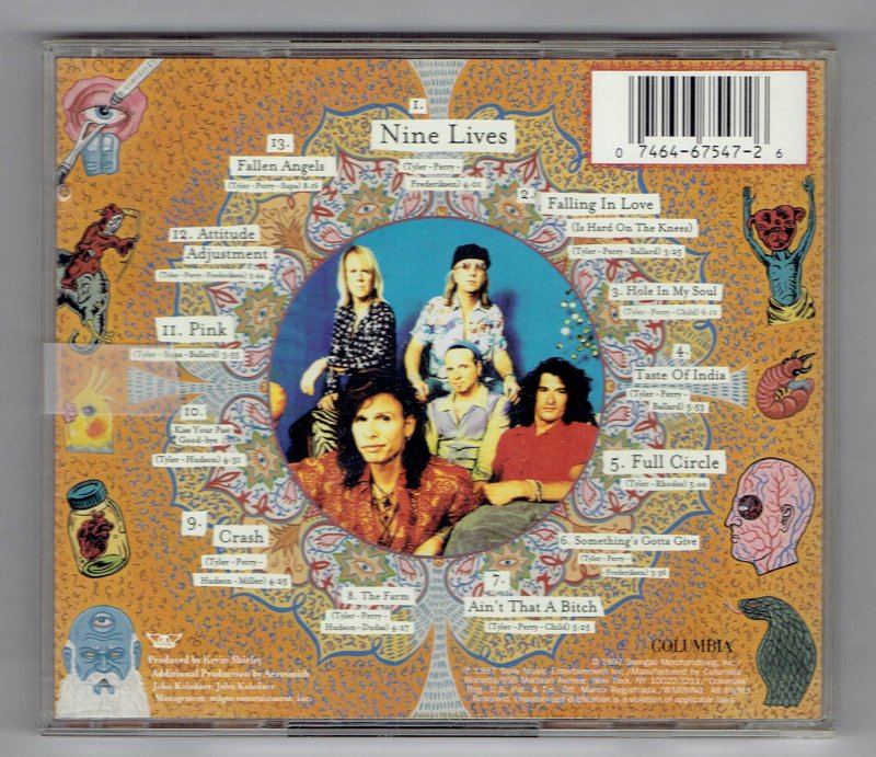 track list Nine Lives Falling In Love (Is Hard On The Knees) Hole In My Soul Taste Of India Full Circle Something's Gotta Give Ain't That A Bitch The Farm Crash Kiss Your Past Good-Bye Pink Attitude Adjustment Fallen Angels