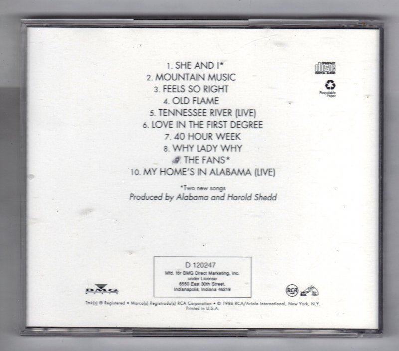 track list She And I 5:16 Mountain Music 4:11 Feels So Right 3:34 Old Flame 3:10 Tennessee River 8:05 Love In The First Degree 3:17 40 Hour Week (For A Livin') 3:20 Why Lady Why 4:09 The Fans 4:52 My Home's In Alabama 8:27