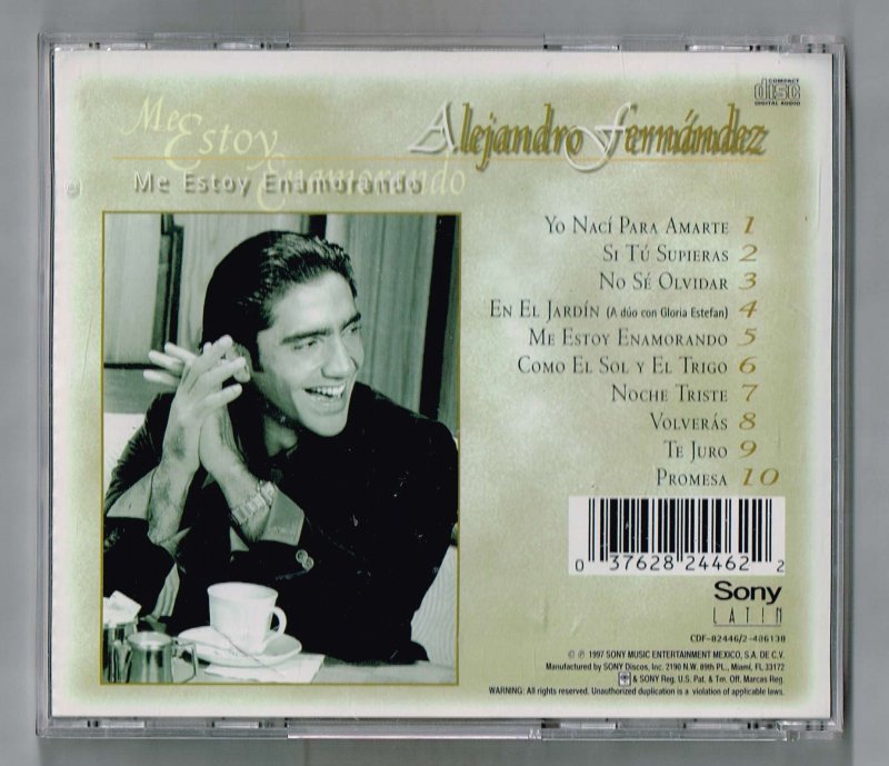 More Great CD's @ www.everything-collectibles.com For Sale is an Alejandro Fernandez Me Estoy Enamorando Music CD. in good used condition. adult owned from private collection. please see photo for more details. what you see is what you will receive. please don't hesitate to ask. Free shipping within the US. Please note all CD's Ship via Media Mail.