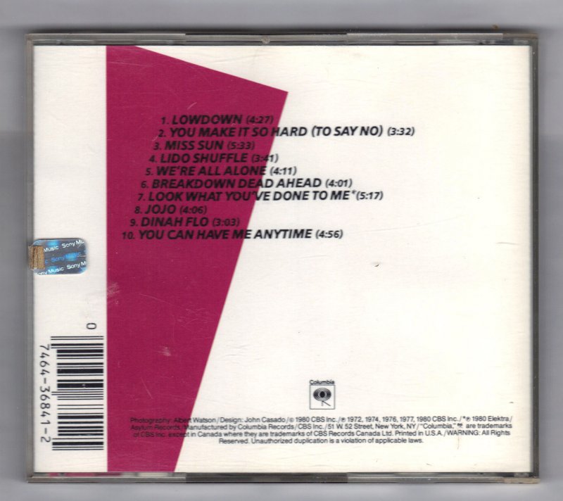 track list Lowdown 4:27 Slow Dancer 3:10 Miss Sun 5:33 Lido Shuffle 3:41 We're All Alone 4:11 Hollywood 3:09 You Can Have Me Anytime 5:00 Jojo 4:06 Hard Times 4:29 Look What You've Done To Me