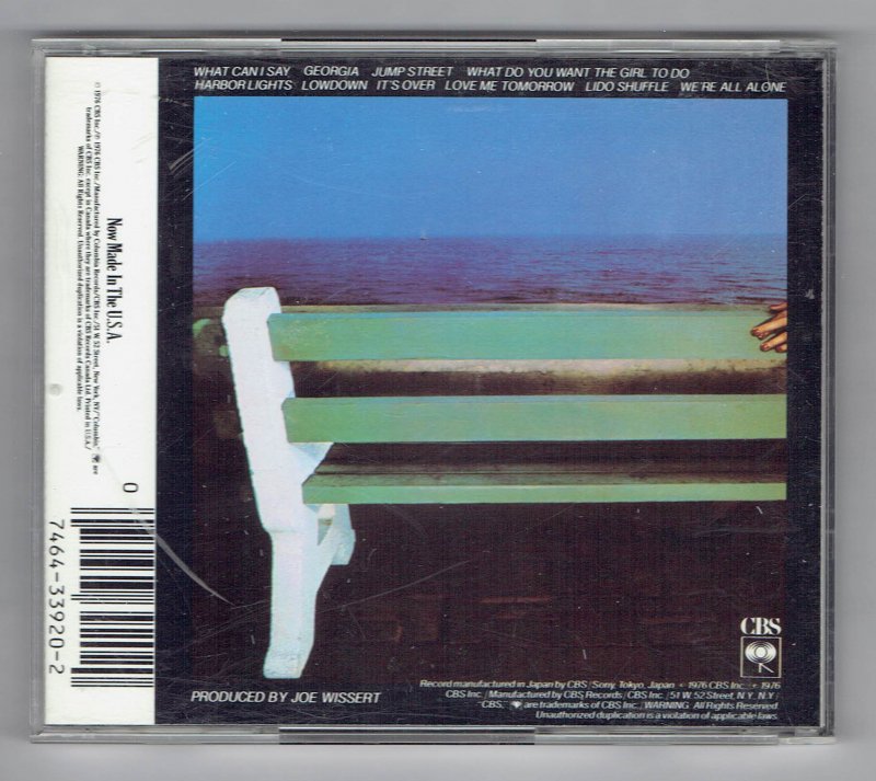 track list What Can I Say 2:59 Georgia 3:54 Jump Street 5:10 What Do You Want The Girl To Do 3:49 Harbor Lights 5:55 Lowdown 5:15 It's Over 2:48 Love Me Tomorrow 3:14 Lido Shuffle 3:40 We're All Alone