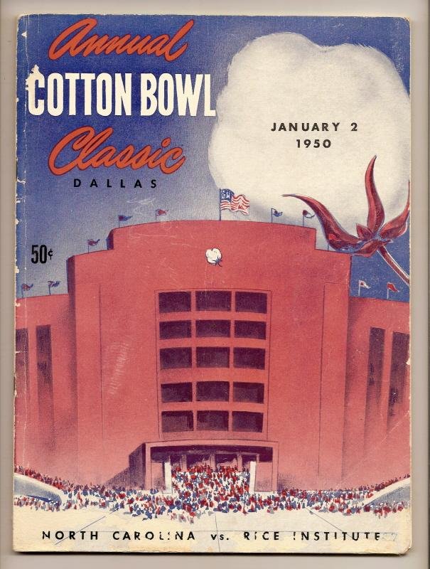 1950 Cotton Bowl Game Program Rice North Carolina
