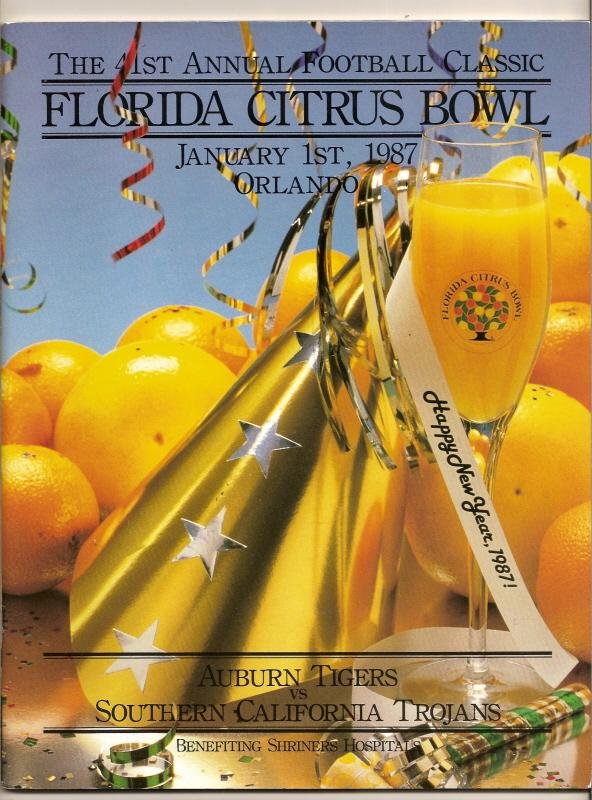 1987 Citrus Bowl Game Program Auburn USC. This program is in very good condition no rips tears or missing pages no writing in or on the program just some minor handling wear. would look great framed with a ticket or picture a RARE piece of