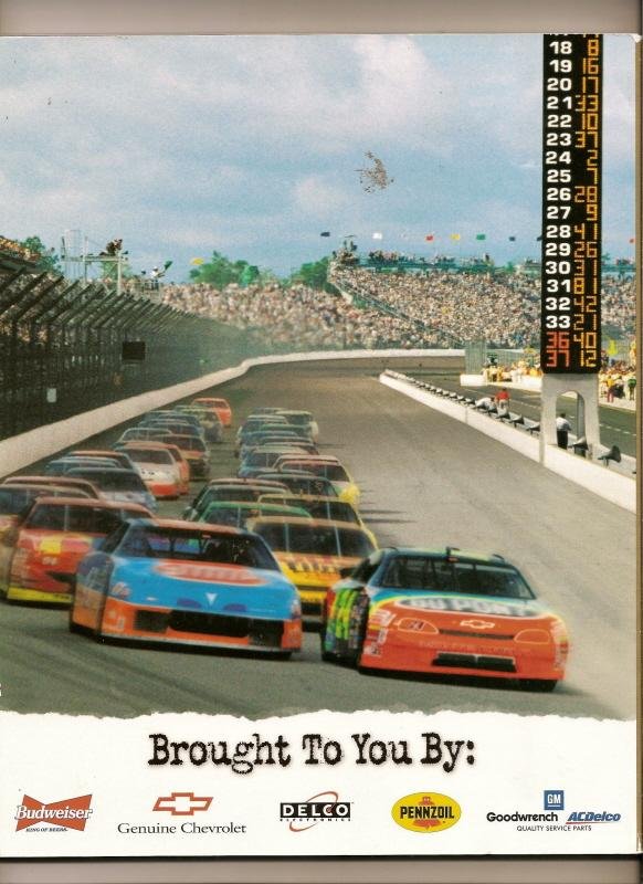 1996 Brickyard 400 nascar race program. This Program is in very good condition no ripped torn or missing pages no writing on or in the program just has some minor handling wear nice RARE piece of Nascar car racing History if you have any fur