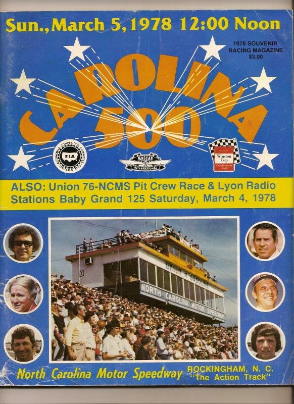 1978 Carolina 500 Nascar Race Program. This Program is in very good condition with some minor handling wear nice RARE piece of Nascar car racing History. if you have any questions please don't hesitate to ask. Fast same or next day shipping with delivery confirmation within the U.S. This Item Ships Free within the United States.
