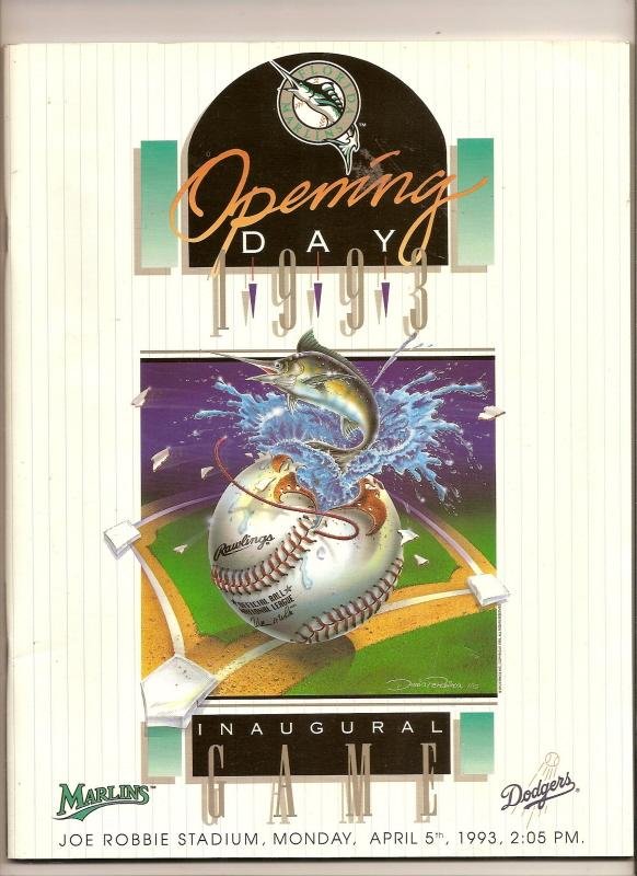 1993 Marlins Inaugural Game Program Marlins Dodgers