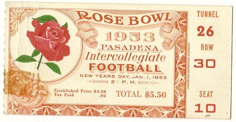 1953 Rose Bowl Ticket Stub Wisconsin USC