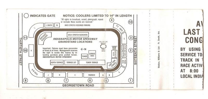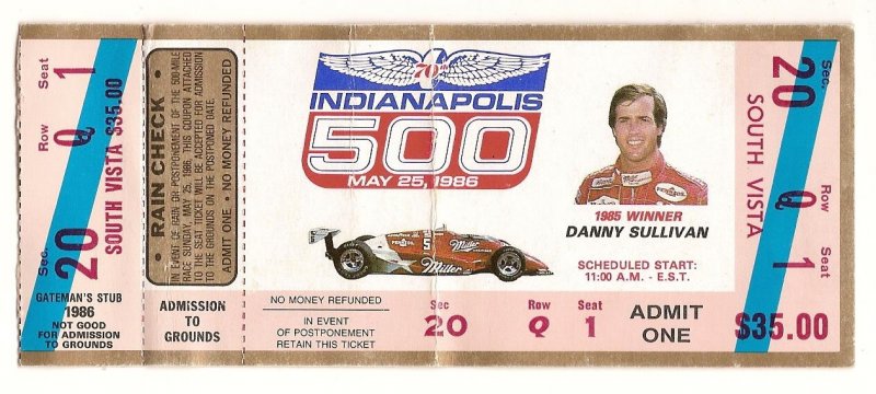 1986 Indianapolis 500 Mile Race Full Unused Ticket