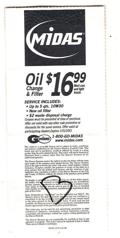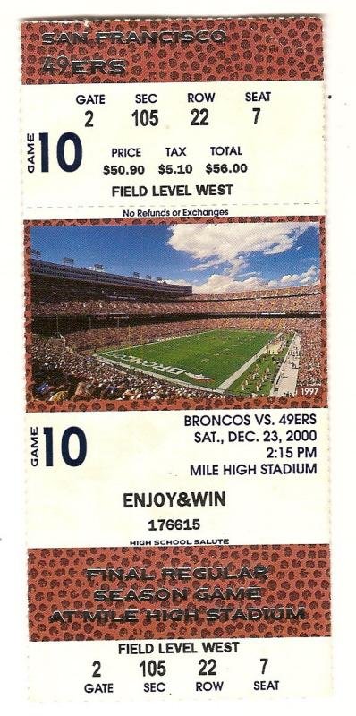 Final Game Full Ticket at Mile High Stadium Denver Broncos