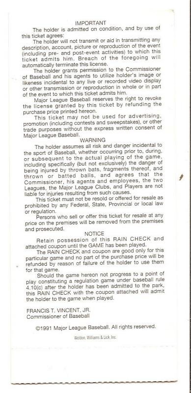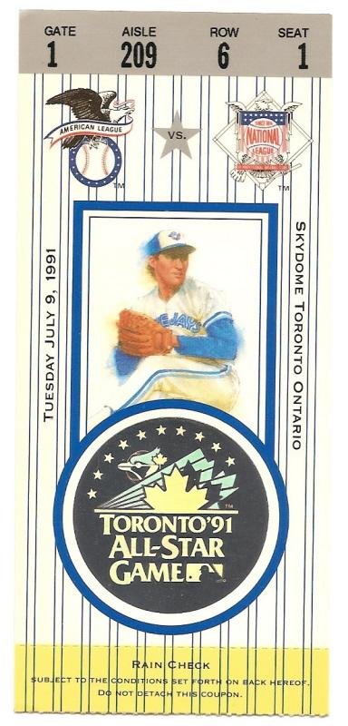 1991 MLB Baseball All Star Game Ticket STub Toronto blue jays
