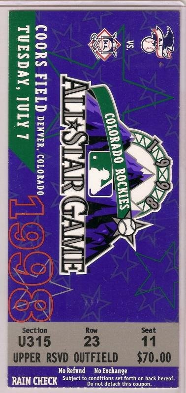 1998 MLB Baseball All Star Game Ticket STub Colorado Rockies