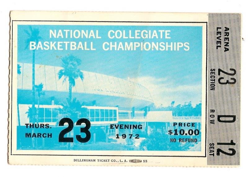 1972 NCAA Final Four Semi Finals Ticket Stub UNC Florida St Louisville UCLA