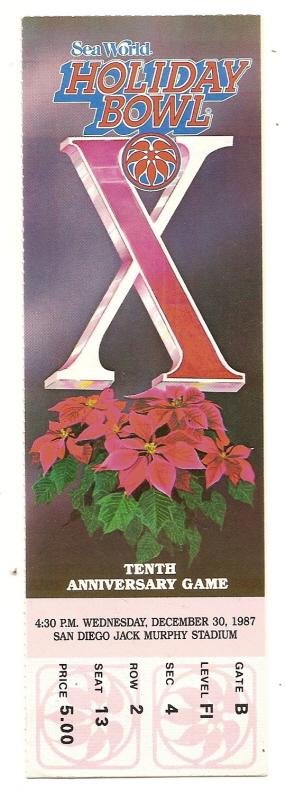 1987 Holiday bowl Game Ticket Stub Iowa. This Ticket Stub is in very good condition no rips tears or writing just some minor wear as shown in the photos. what you see is what you will get. does not distract from the rarity of this item! w