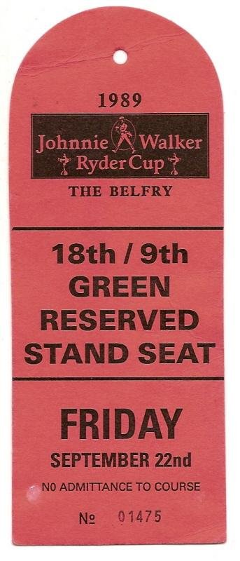 1989 Ryder Cup Golf Ticket Friday September 22nd
