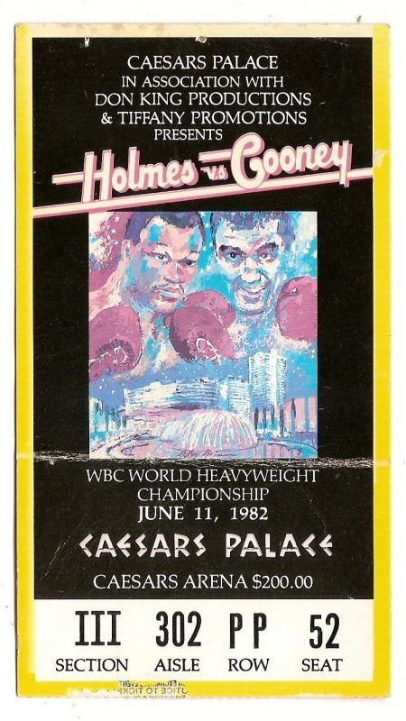 1982 Boxing ON SITE Ticket stub Larry Holmes Vs Cooney