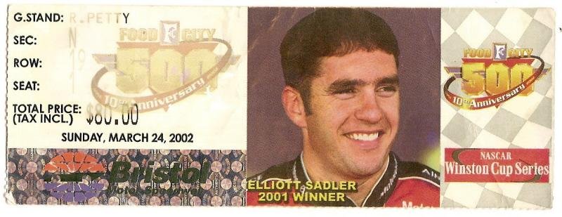 more great collectibles @ www.everythingcollectibles.biz for sale is a rare 2002 Nascar Food City 500 Ticket Stub BMS. ticket is in very good condition no rips tears or writing just some minor handling wear. what you see si what you will recieve.