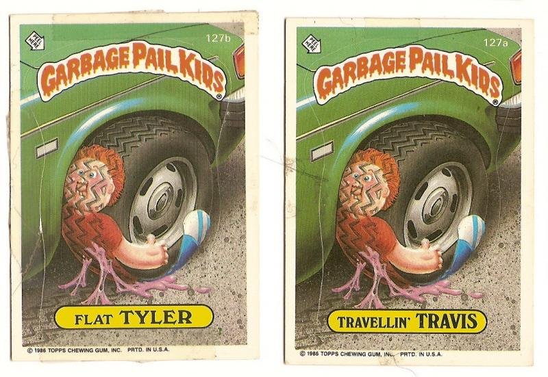 GARBAGE PAIL KIDS Cards 4th SERIES 127 a & b Travellin' Travis Flat Tyler