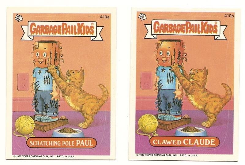 GARBAGE PAIL KIDS Cards 10th SERIES 410 a & b Scratching Pole Paul Clawed Claude