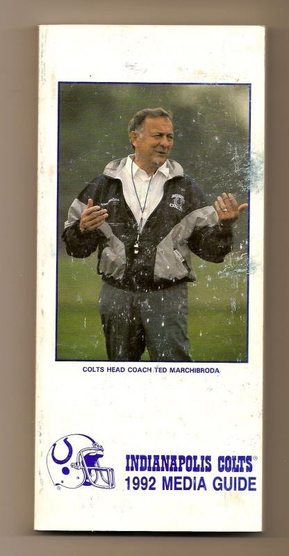 1992 Indianapolis Colts Media Guide. The Media Guide is in very good condition no ripped torn or missing pages, no writing in or on the media guide just has some minor handling wear nice RARE piece of Football history History if you have any further qqu