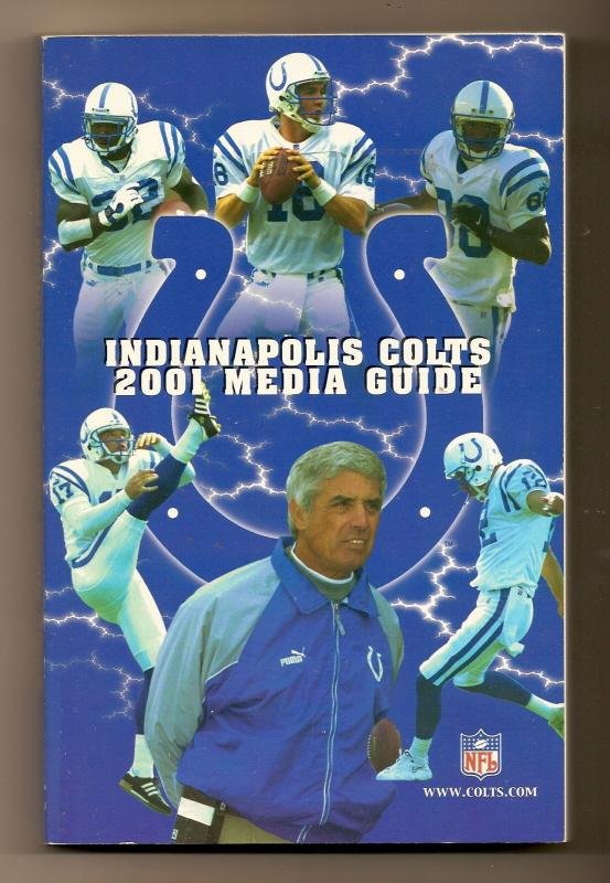2001 Indianapolis Colts Media Guide. The Media Guide is in very good condition no ripped torn or missing pages, no writing in or on the media guide just has some minor handling wear nice RARE piece of Football history History if you have any further qqu