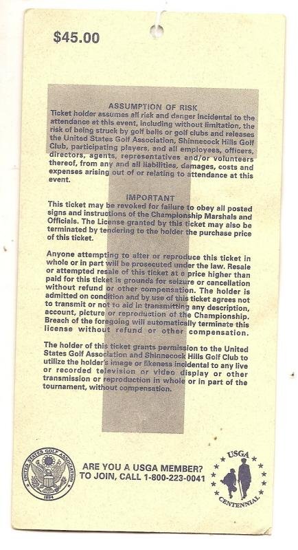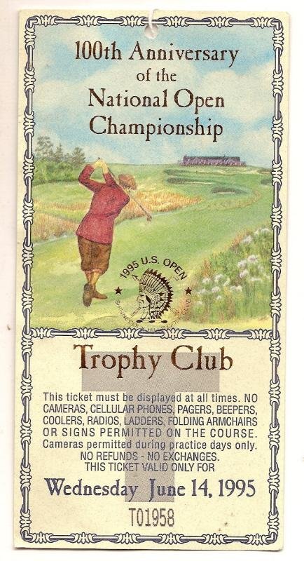 1995 US Open ticket wednesday June 14 practice Round. This Ticket is in Very Good Condition no rips tears writing or creasing on the ticket a RARE piece of Golf and US Open History if you have any further questions please dont hesitate to ask!