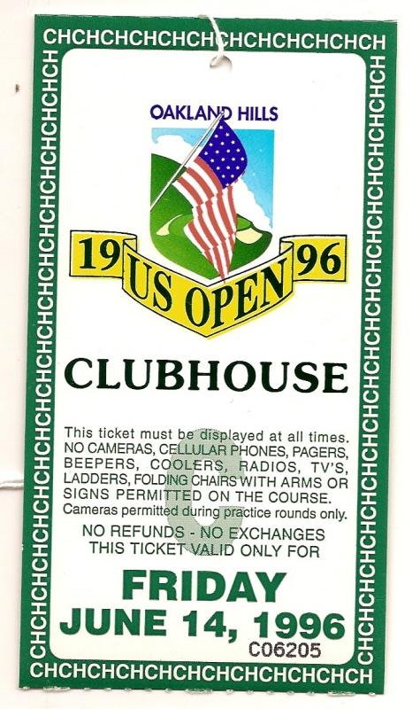 1996 US Open ticket Friday June 14th Second Round Oakland Hills. This Ticket is in Very Good Condition no rips tears writing or creasing on the ticket a RARE piece of Golf and US Open History if you have any further questions please dont hesitate to ask!