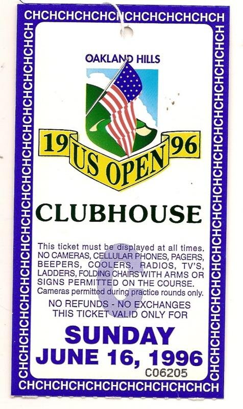 1996 US Open ticket Sunday June 16th Final Round Oakland Hills
