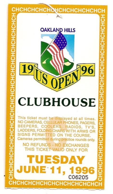 1996 US Open ticket Tuesday June 11th Practice Round Oakland Hills