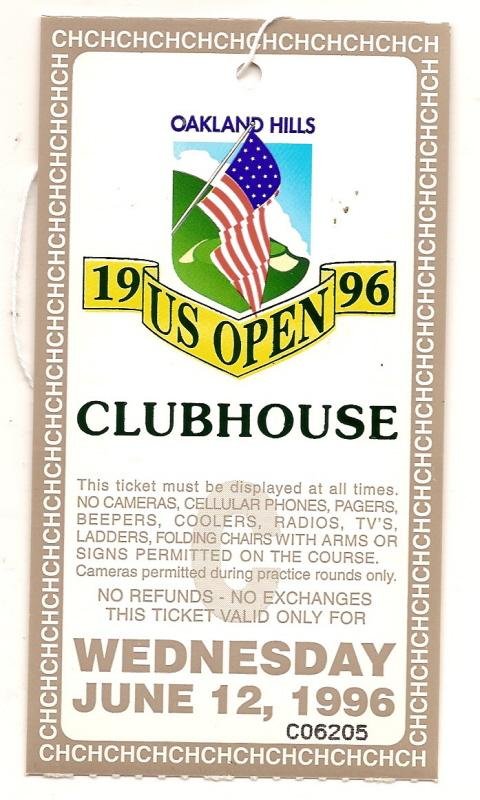 1996 US Open ticket Wednesday June 12th Practice Round Oakland Hills