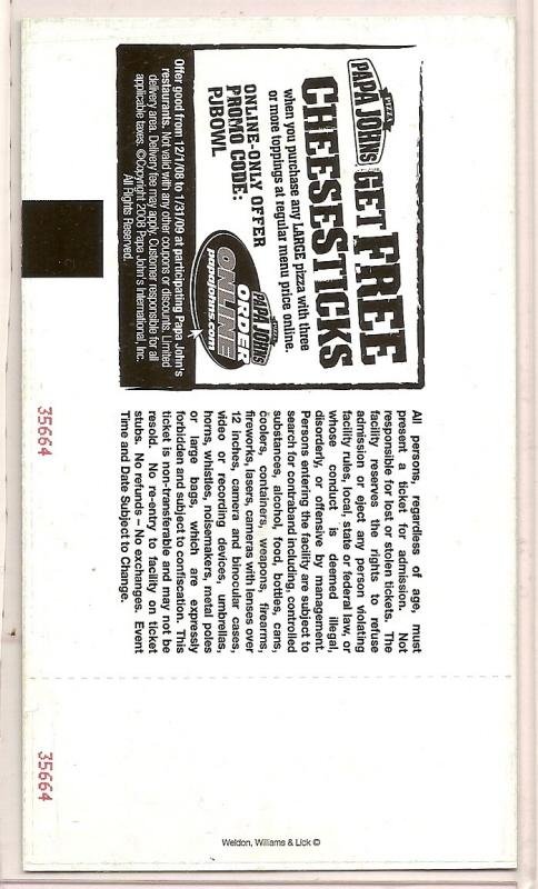 2008 papa johns Bowl Game full Ticket. This Ticket is in Very Good Condition no rips tears writing or creasing a nice RARE piece of College football History if you have any further questions please dont hesitate to ask!