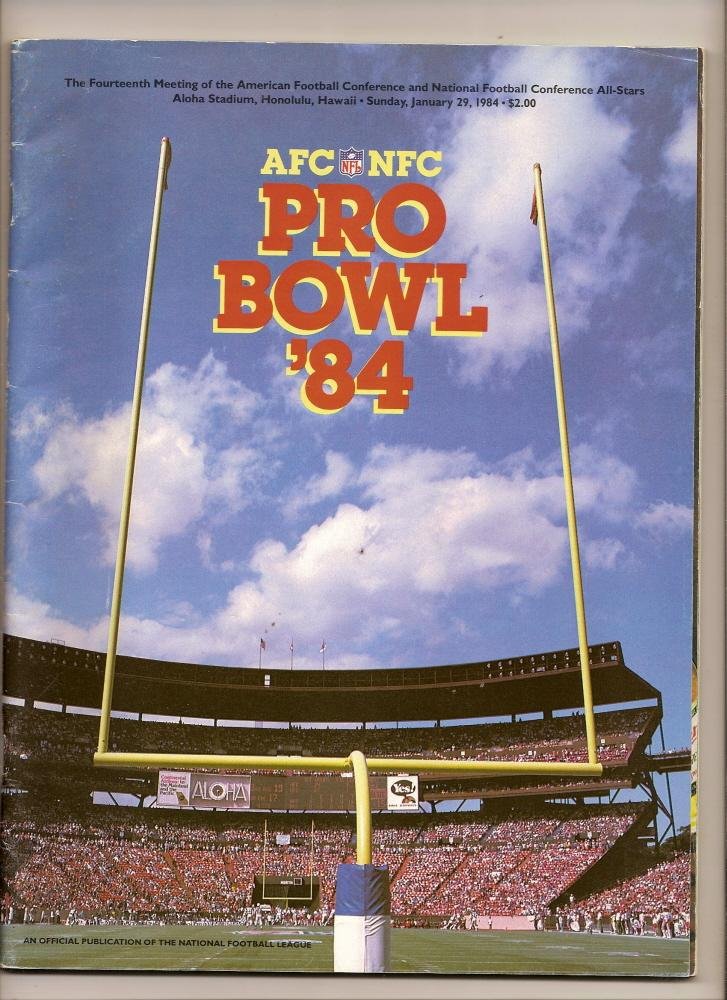 1984 NFL Pro Bowl Program NFC AFC. This Program is in Very good condition with some handling wear to the front and back covers would look great framed with a Ticket or picture a RARE piece of Pro Bowl History. if you have any questions please don't hesitate to ask. Fast same or next day shipping with delivery confirmation within the U.S. This Item Ships Free within the United States.