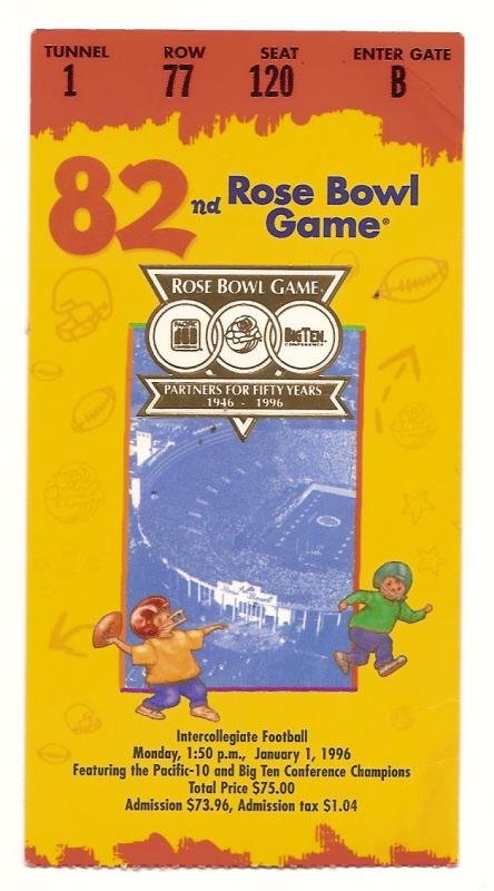 1996 Rose Bowl Game Ticket Stub USC Northwestern