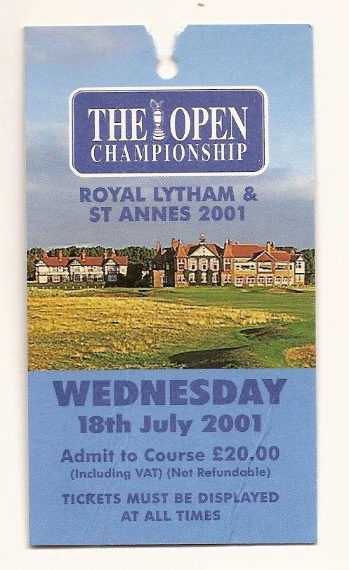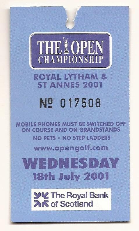 2001 British Open Ticket wenesday july 18th practice Round David Duval Winner