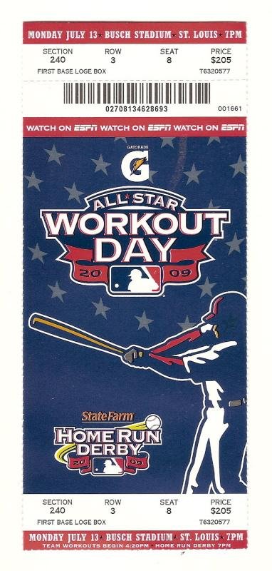 2009 MLB All Star Game Home Run Derby Full Ticket