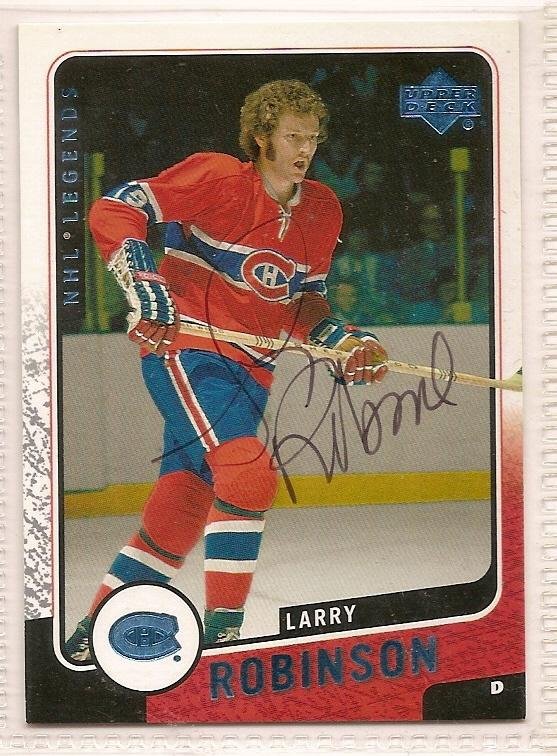 more autographs at www.everythingcollectibles.biz. For sale an Authentic Larry Robinson signed autographed Hockey card HOF in person. what you see is what you will recieve. please look at the photos provided for more details. if you have any questions please dont hesitate to ask. Comes with a COA from Everything Collectibles