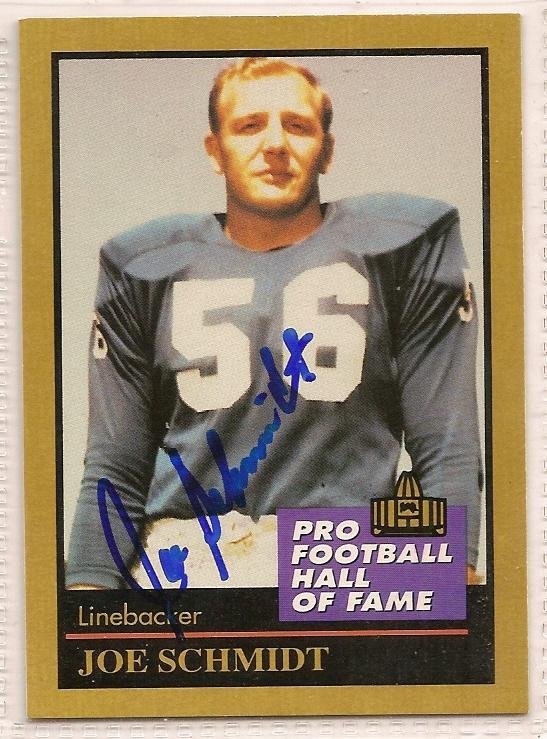 more autographs at www.everythingcollectibles.biz. For sale an Authentic Joe Schmidt signed autographed Football card HOF. what you see is what you will recieve. please look at the photos provided for more details. if you have any questionsssss please dont hesitate to ask. Comes with a COA from Everything Collectibles