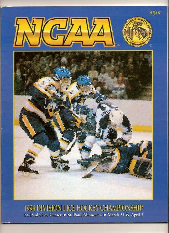 1994 NCAA Ice Hockey Championship Frozen Four Minnesota Harvard Boston Univ. Lake Superior State Final 4. The Program is in VERY good Condition no ripped torn or missing pages, no writing in or on the program just some minor handling wear as you can see in the pictures if you have any further questions please d